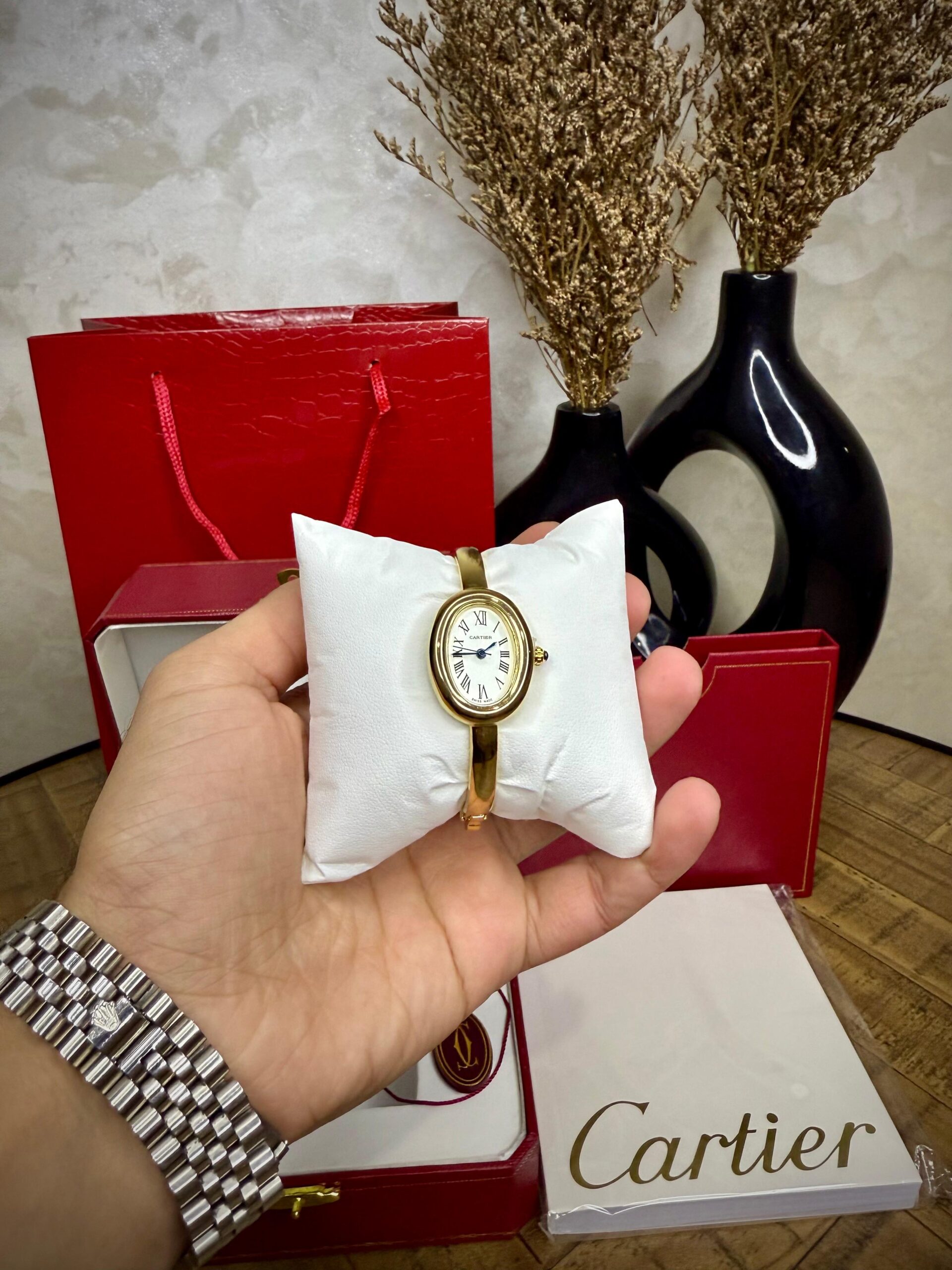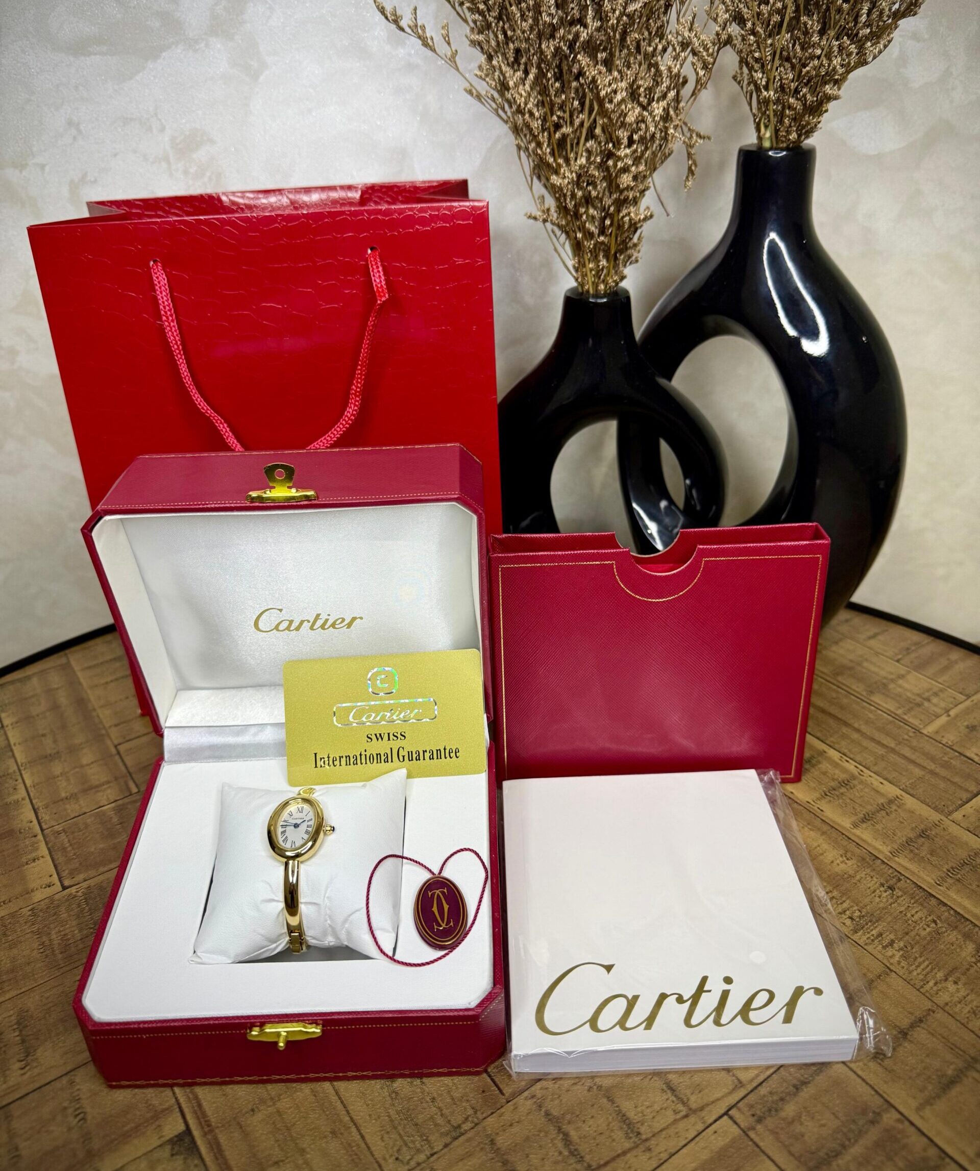 Montre Cartier avec bracelet – élégante, résistante à la rouille, livrée avec packaging complet et garantie, parfaite comme cadeau.